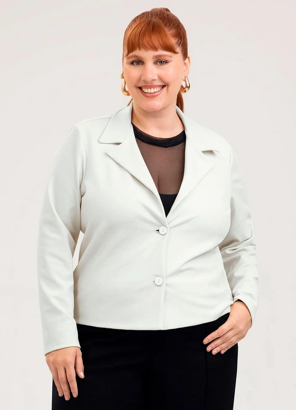 Cativa - Blazer Plus Size em Tecido com Brilho Off White