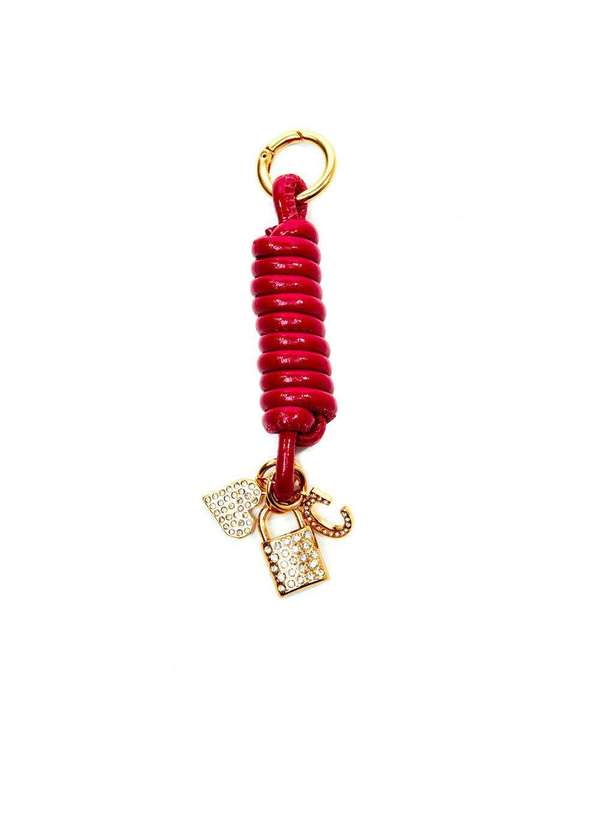 Sabe aquele acessório versátil e que nunca sai de moda? Agora a Cecconello traz na sua coleção chaveiro em couro com charms em metal dourado cravejado de cristais para você abusar da criatividade e criar looks incríveis! Características Material: Couro Cor: Vermelho .