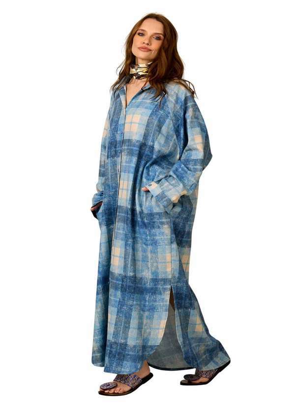 A Chemise Longa Azul Estampa Xadrez Yacamim combina conforto e estilo para ocasiões casuais e elegantes. Confeccionada em 100% algodão, a peça apresenta mangas longas, bolsos funcionais, fendas laterais e botões azuis, trazendo praticidade e charme ao look. Produzida com atenção aos detalhes pela marca Yacamim, 100% nacional, garante qualidade e durabilidade em cada costura. Acessórios não acompanham o produto anunciado. Devido à iluminação e variações naturais de produção, o produto pode apresentar pequenas diferenças de tonalidade, mantendo a exclusividade da peça adquirida. Instruções de Lavagem: Lavar à mão ou na máquina em ciclo suaveNão utilizar cloro ou derivadosSecar à sombraPassar a ferro em temperatura baixaNão lavar a secoMedidas da modelo: Altura: 1,69 m Busto: 79 cm Cintura: 62 cm Quadril: 89 cm.