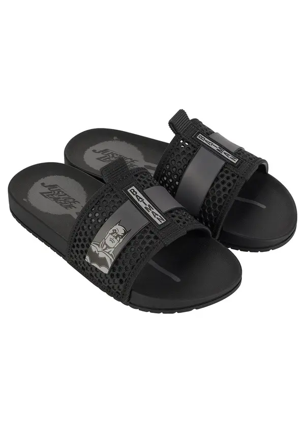 Chinelo Slide Infantil Liga da Justiça Grid Gaspea, desenvolvido em PVC. Solado flexível.
