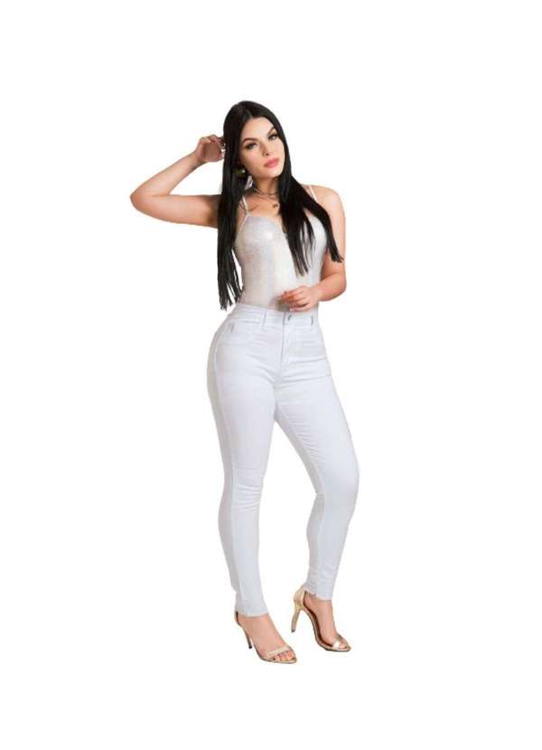 Razon Jeans - Cigarrete Feminina Sarja Lycra Branca Barra Desfiada - BrancoCódigo do produto: 23423675