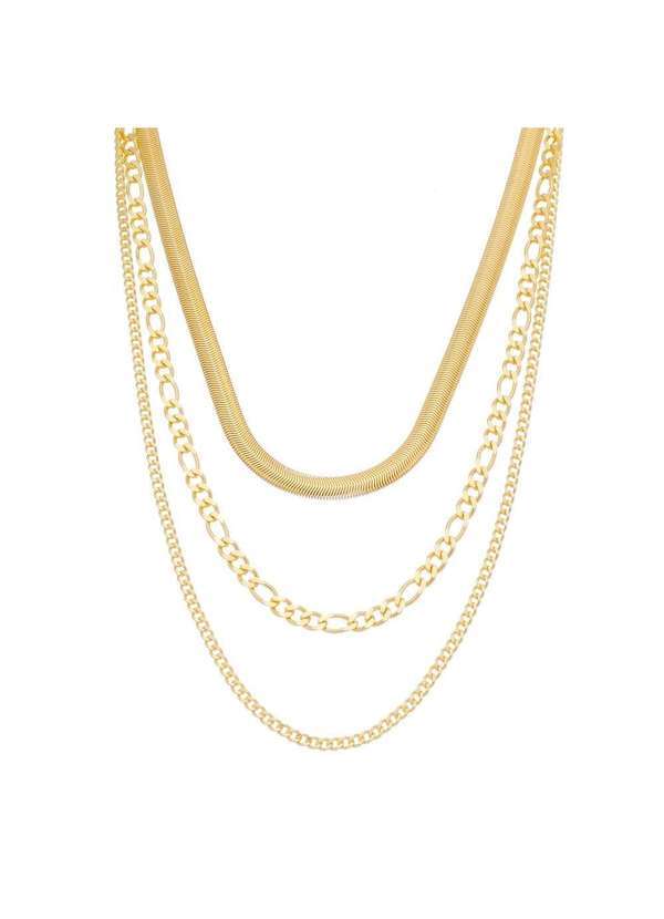 Piuka - Colar 3 Voltas Elos Malha de Metal Folheada a Ouro 18k Dourado