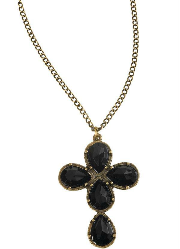 Moda Pop - Colar com Pingente de Cruz Ouro Envelhecido