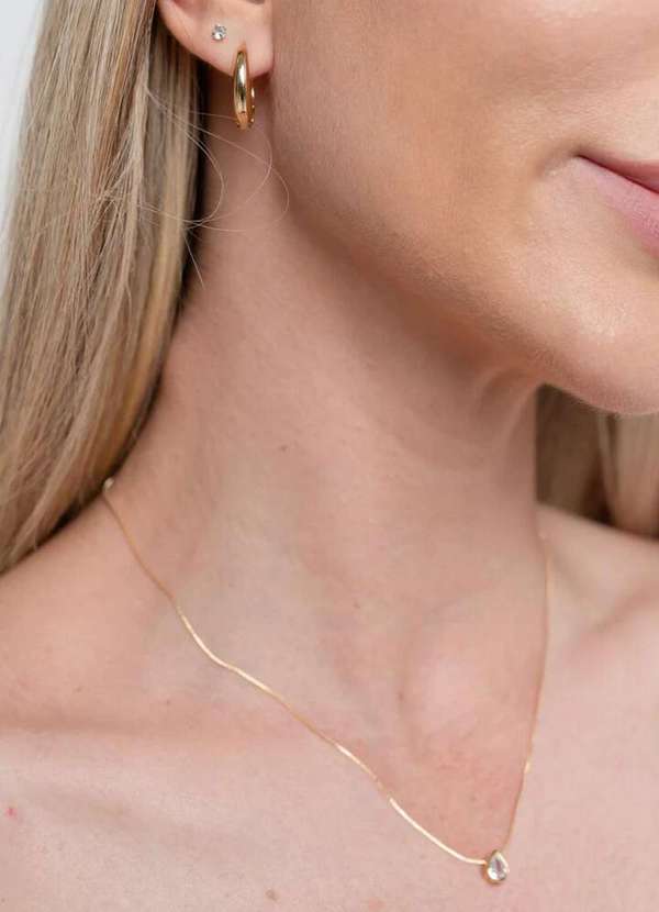 Ora Semijoias - Colar Semijoia com Pingente Gota Cristal Banhado a Ouro 18k - Dourado