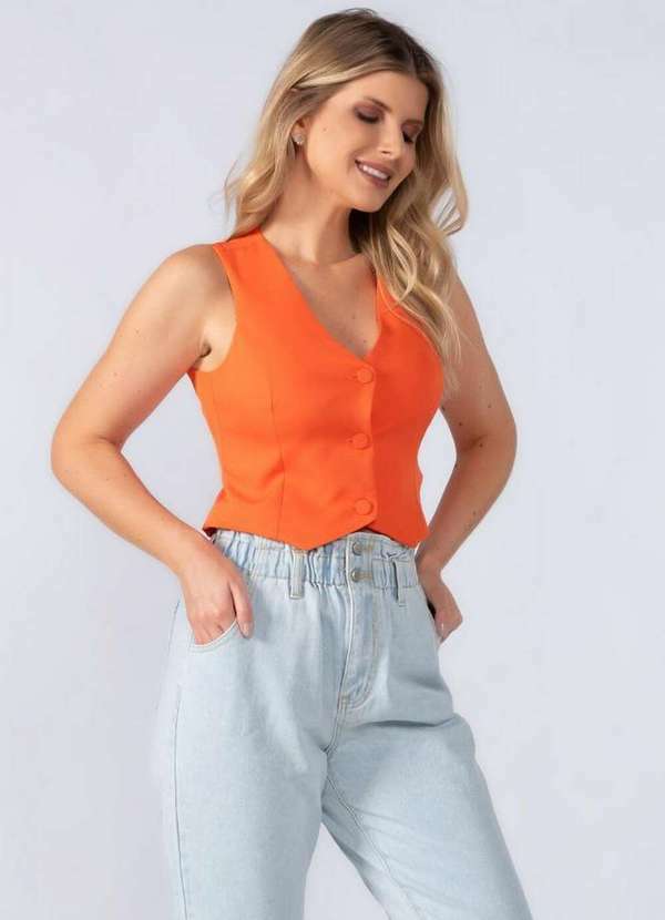 Lamis - Colete Alfaiataria com Botoes Forrado Laranja