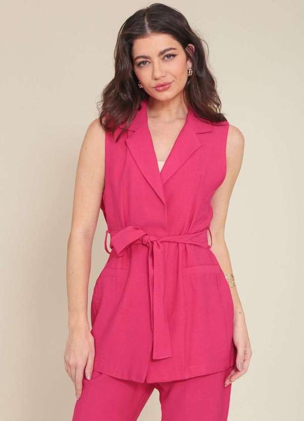 Pop Me - Colete Alongado Alfaiataria Crepe com Cinto Rosa