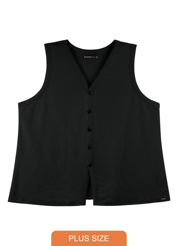 Rezzato - Colete Canelado com Botões Plus Size Preto