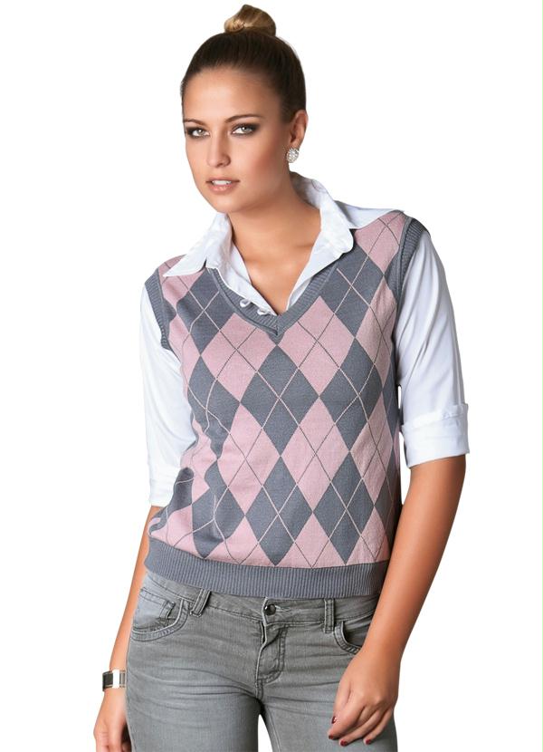 Quintess - Colete Cinza e Rosa Liso nas Costas