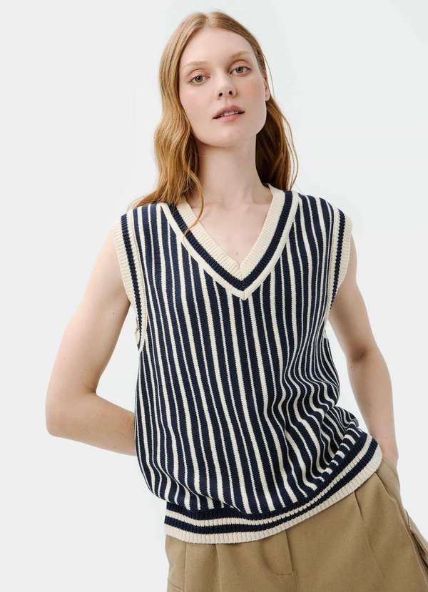 Hering - Colete Feminino Fio Tinto em Trico Azul