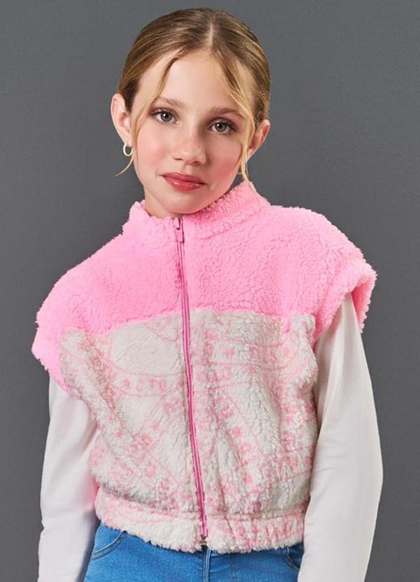 Catavento - Colete Menina em Pelo Carneirinho Rosa