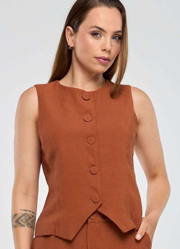 Pks - Colete Pks Alfaiataria em Viscose Marrom