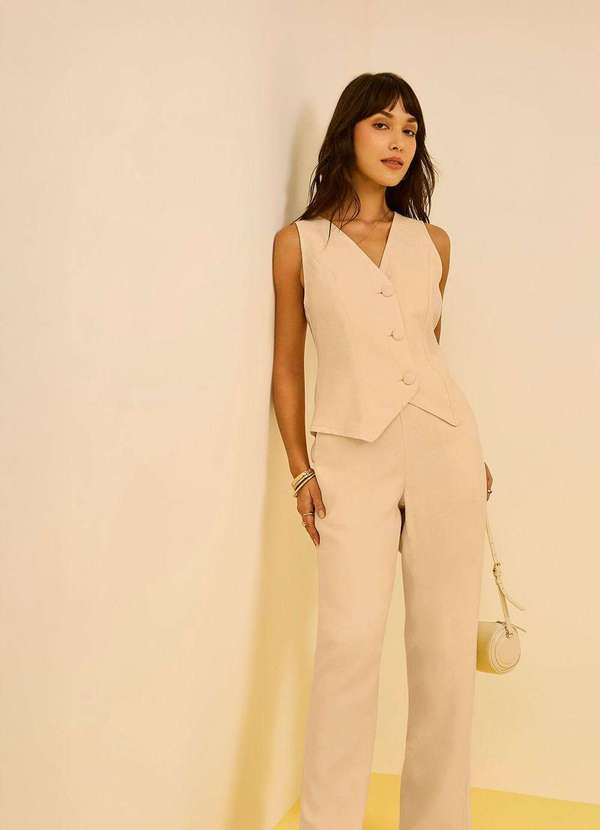 Zinco - Colete Zinco Ajustado sem Manga Padrão Bege Bege