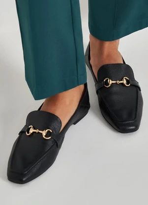Mocassim Preto de Couro com Fivela Dourada Dulce