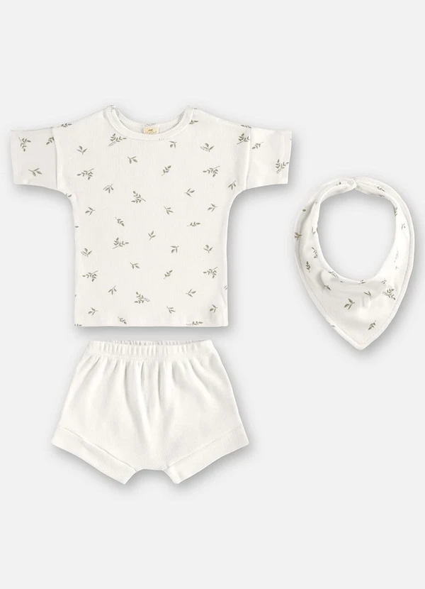 Composição: Babador: 96% Algodão e 4% Elastano | Blusa: 96% Algodão e 4% Elastano | Short: 96% Algodão e 4% Elastano