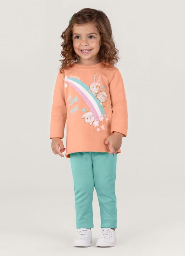 Composição: BLUSÃO 50% ALGODÃO 50% POLIÉSTER/ CALÇA LEGGING 98% ALGODÃO 2% ELASTANO