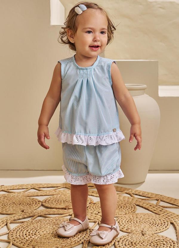 Pokótinha - Conjunto Bata e Shorts em Tecido Stripe Verde