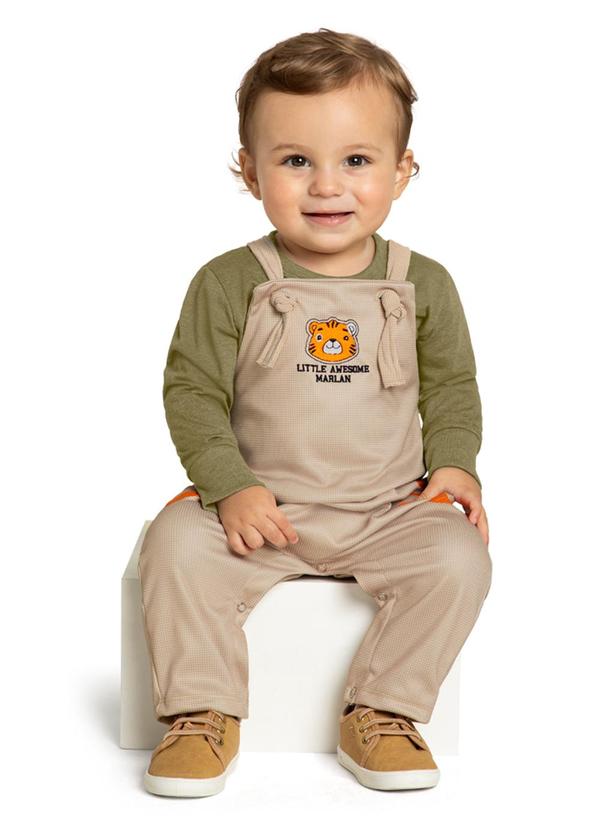 Marlan - Conjunto Bebê Camiseta e Jardineira Moletom Bege
