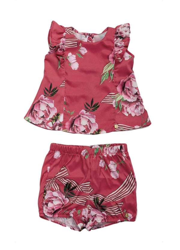 Ok e Pakita - Conjunto Bebê Estampado Flores Ok&Pakita Vermelho
