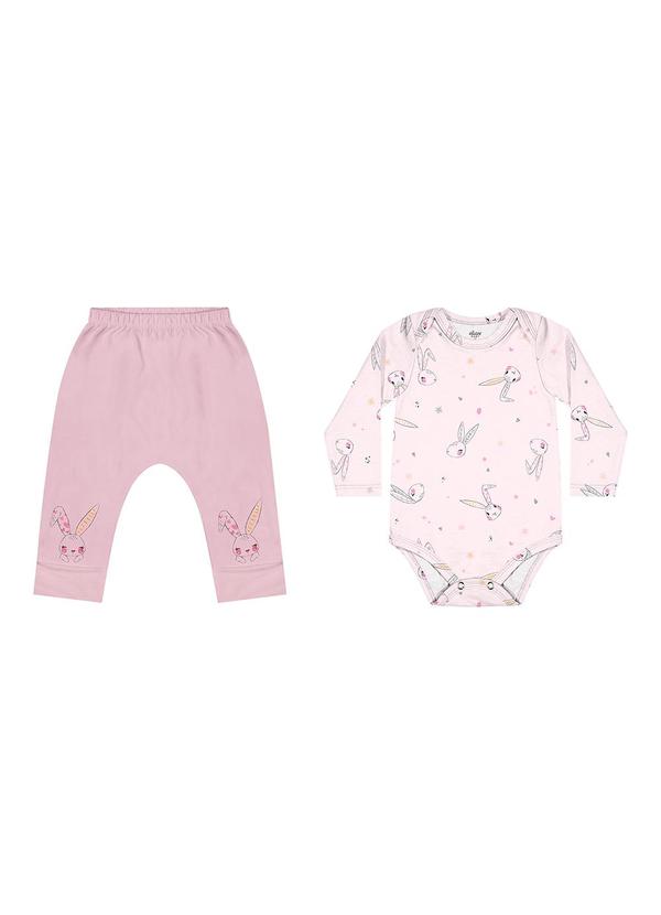 Elian - Conjunto Bebê Menina Estampado Rosa