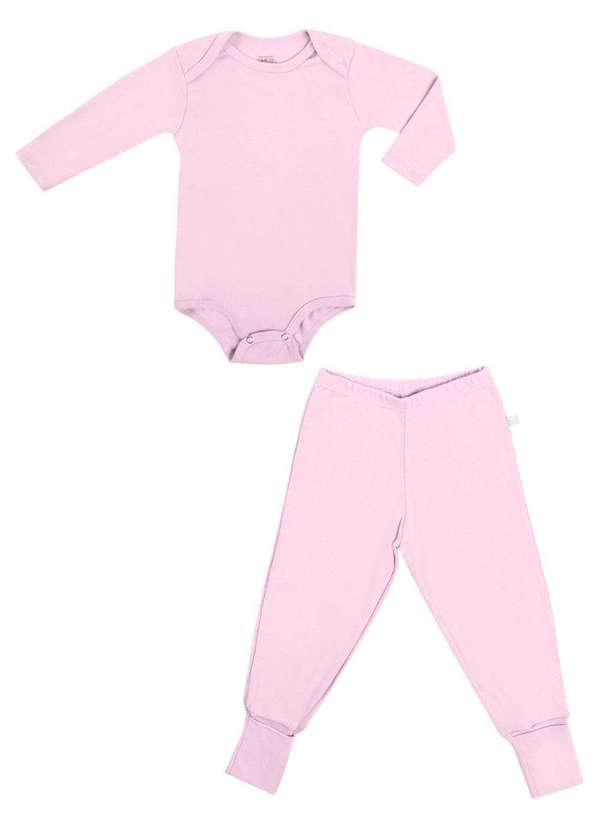Have Fun - Conjunto Bebê Rosa Claro Body Manga Longa Calça Have Fun Rosa