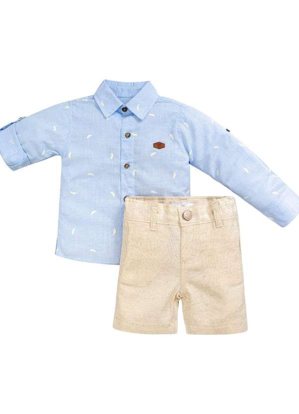 Anjos Baby - Conjunto Bermuda Camisa Manga Longa Bebê Anjos Baby Azul