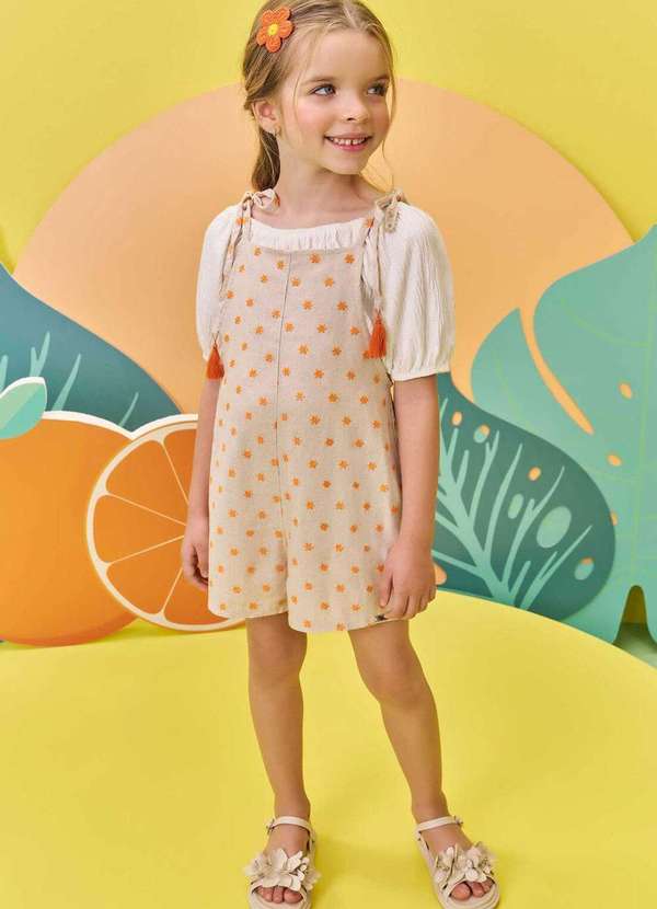 Infanti - Conjunto Blusa com Jardineira em Linho Bordado Flores Infanti Bege