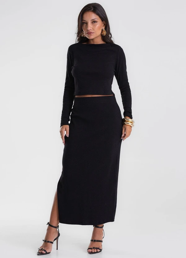 Endless - Conjunto Blusa com Saia Midi Preto