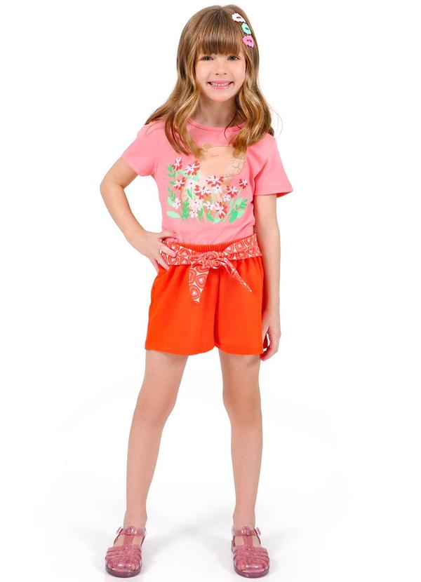 Tink Bink - Conjunto Blusa com Silk e Short com Cinto Rosa