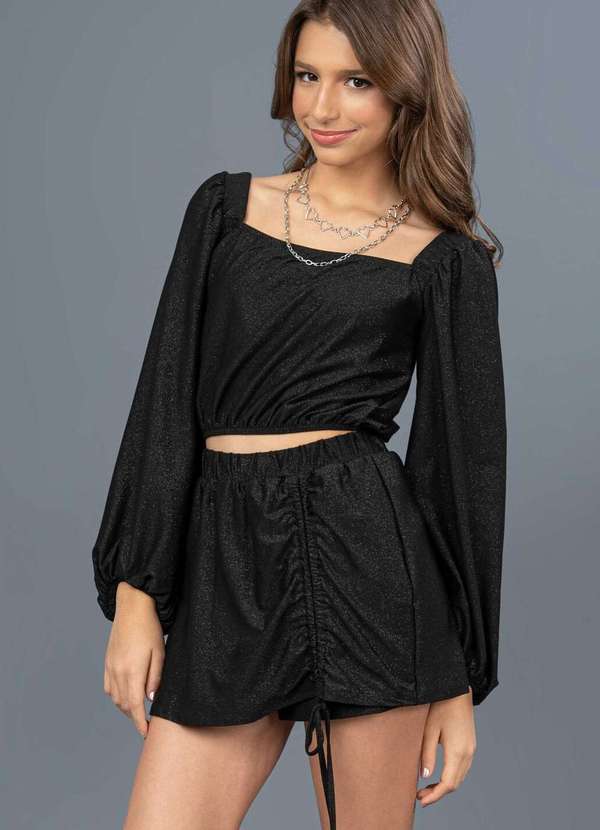 Collie - Conjunto Blusa Cropped e Shorts Saia Collie Preto