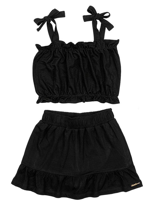 Soft Bonni - Conjunto Blusa e Saia Infantil Feminino Preto