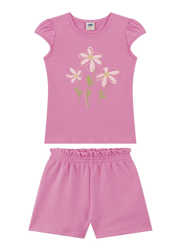 Marlan - Conjunto Blusa e Short Saia Moletinho Rosa