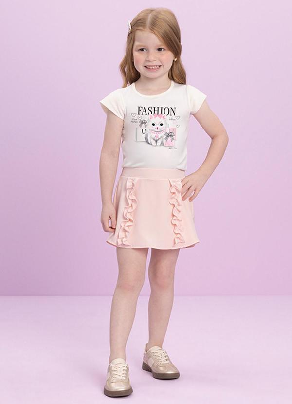 Milli e Nina - Conjunto Blusa e Short/Saia Twill Giorno Rosa