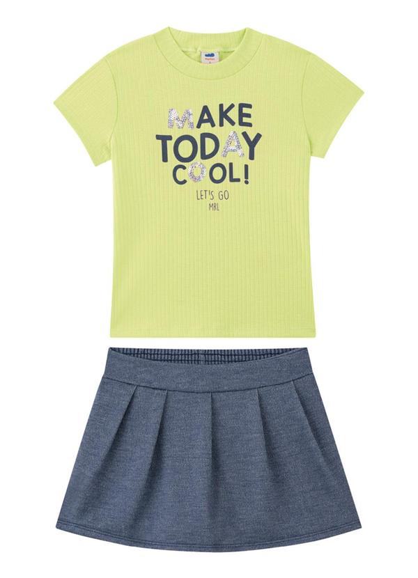 Composição: Shorts Saia 54% Algodão, 46% Poliéster. Blusa 49% Algodão, 49% Poliéster, 2% Elastano.