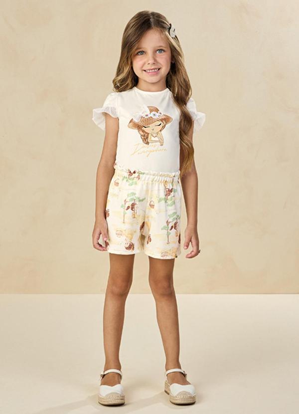 Milli e Nina - Conjunto Blusa e Shorts Texturizado Bege