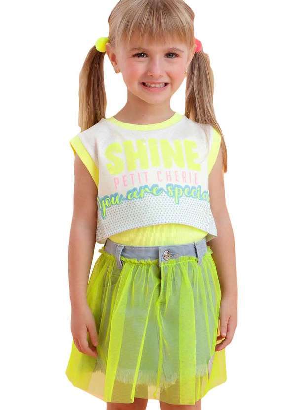 Petit Cherie - Conjunto Blusa Saia Infantil Neon Petit Cherrie Amarelo