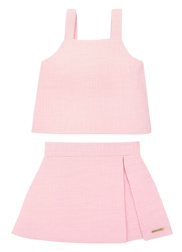 Carinhoso - Conjunto Blusa & Shorts Saia em Algodão Rosê