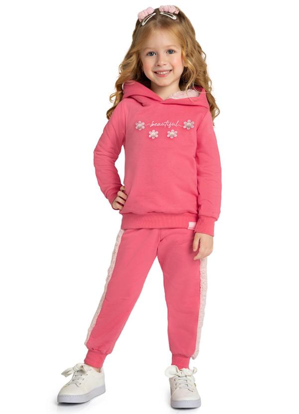 Composição: CALÇA: 100% Algodão RECORTE LATERAL 100% Poliéster BLUSÃO: 100% Algodão FORRO: CAPUZ: 100% Poliéster