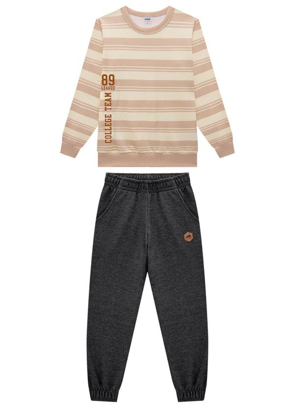 Marlan - Conjunto Blusão e Calça em Moletom Jeans Bege