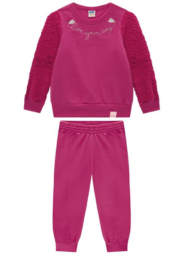 Marlan - Conjunto Blusão Sherpa e Calça em Moletom Rosa