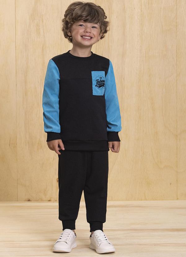 Ioluig - Conjunto Blusão Suede e Calça Malha Tricot Preto