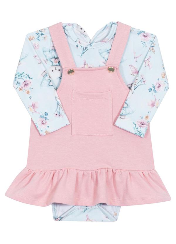 Randa Mundu - Conjunto Body Cotton/ Salopete Molecotton Rosa