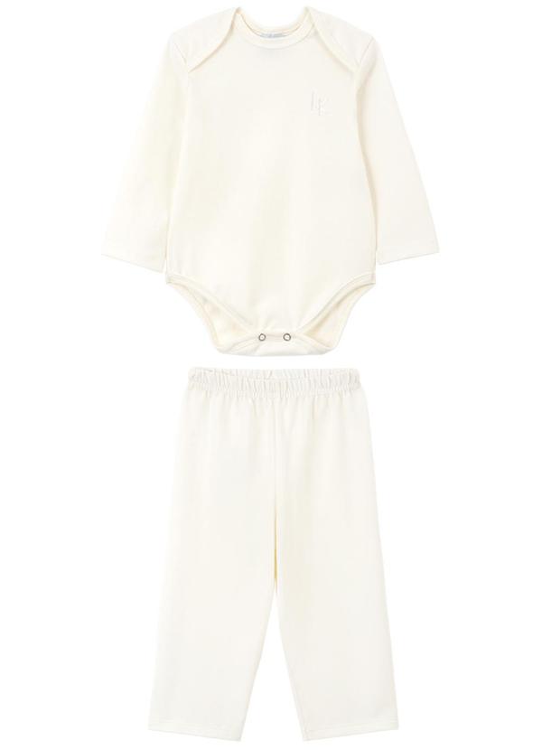 Lik Kids - Conjunto Body e Calça Cotton com Bordado Nude