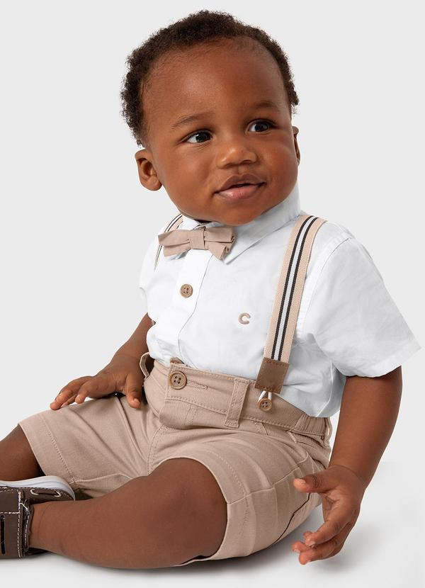 Carinhoso - Conjunto Branco Sarja com Bordado Menino