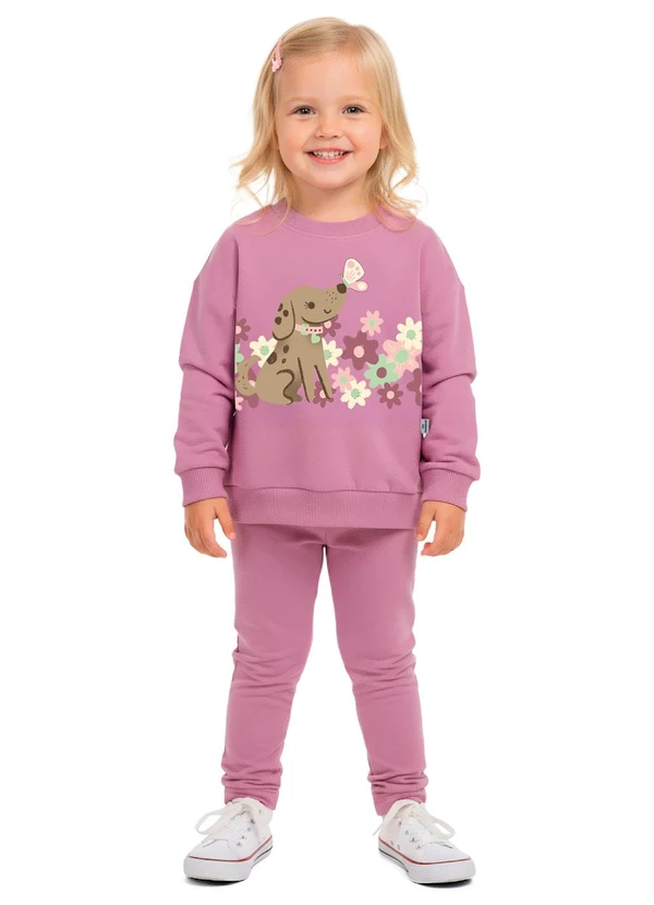 Malwee Kids - Conjunto Cachorro e Flores Rosê