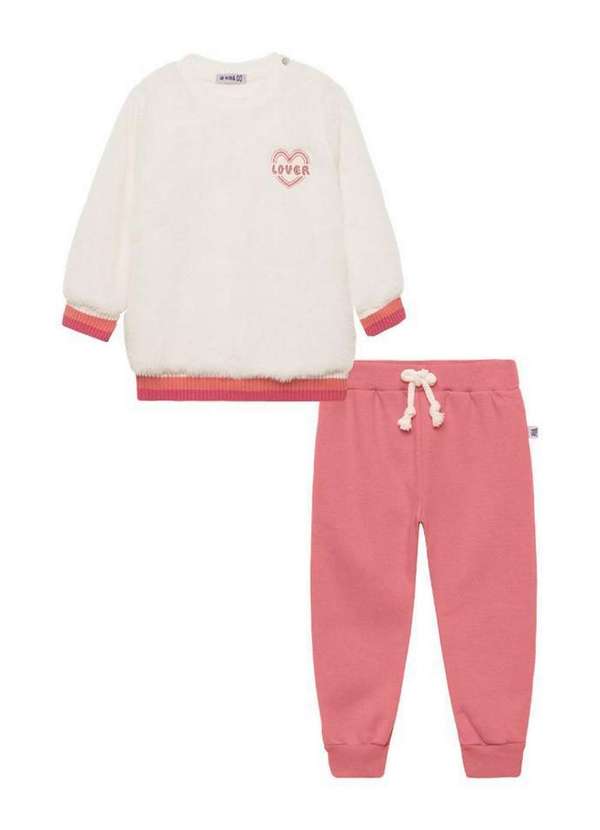 Nina Go - Conjunto Calça Infantil Branco Rosa Lover Nina Go Mescla