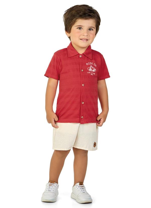 Marlan - Conjunto Camisa e Bermuda Ecotex Lisa Vermelho