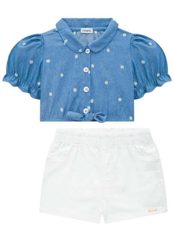 Infanti - Conjunto Camisa Jeans Bordado Shorts Sarja Onix Infanti Azul