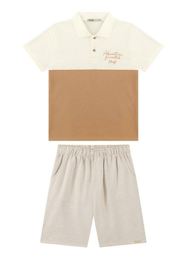 Ioluig - Conjunto Camisa Polo e Bermuda Listras Bege