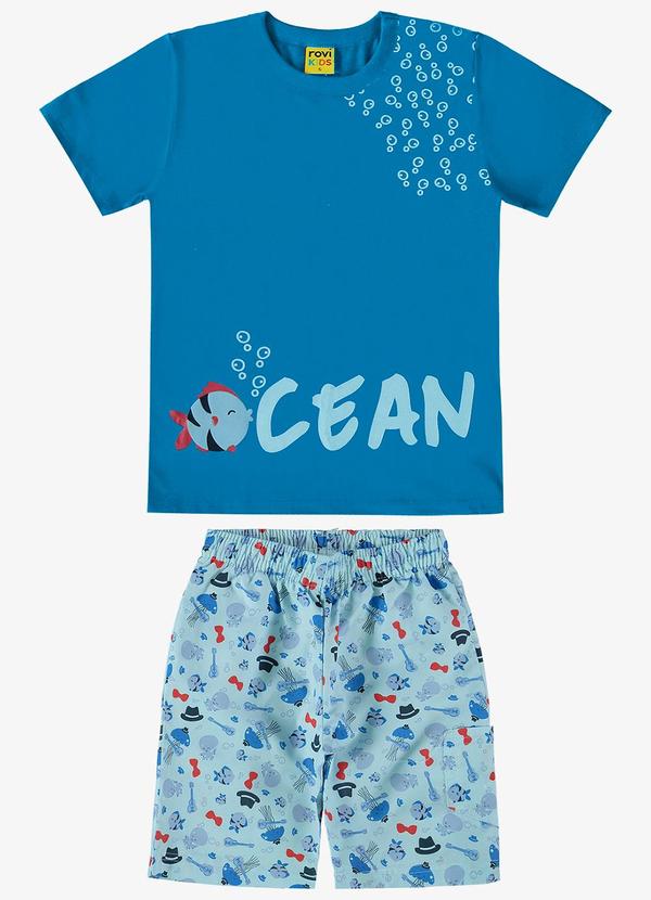 Rovi Kids - Conjunto Camiseta com Bermuda Azul