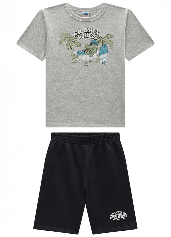 Marlan - Conjunto Camiseta e Bermuda em Moletinho Cinza